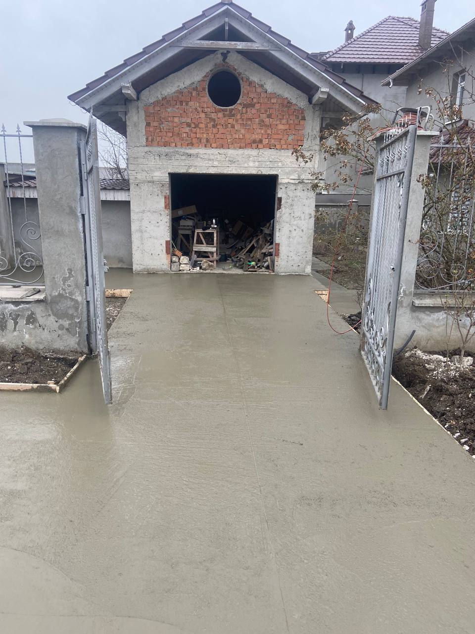 Betonarea ogrăzii oferă o suprafață perfectă pentru covor de piatră!